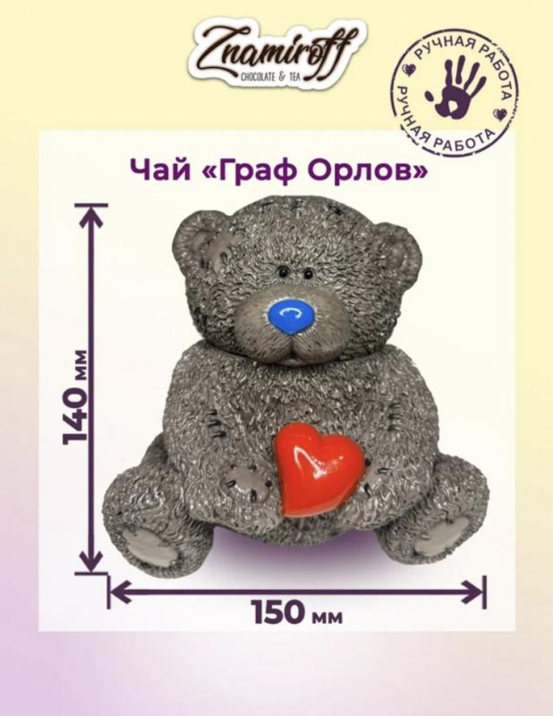 Чай Граф Орлов(чёрный крупнолистовой). Фигурка Мишка (цвет серый) (шкатулка из гипса)