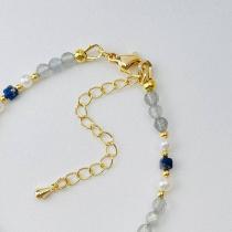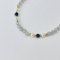 Браслет из Лабрадора, Жемчуга и Лазурита, 16 см + – 18 см +, 3,5 мм , граненный/Необработанный, Мадагаскар