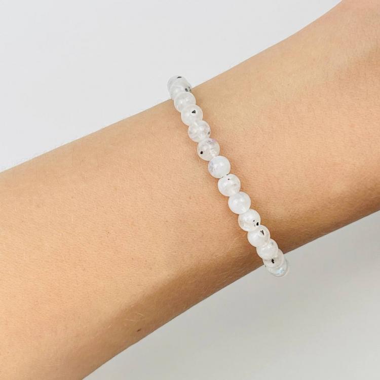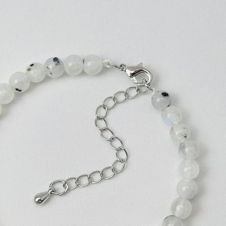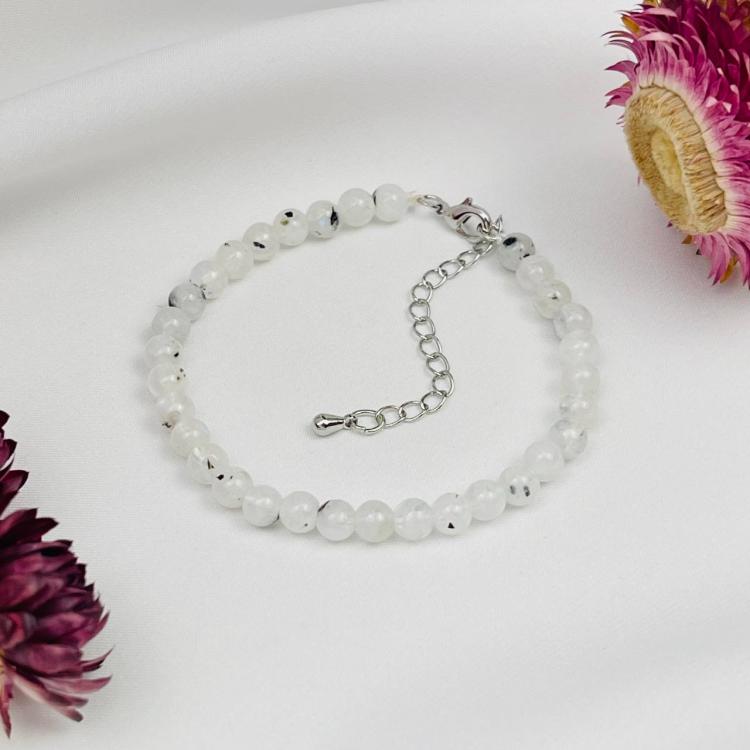 Браслет из Лунного камня с включением Турмалина, 16,5 см +, 5 мм, гладкий, Индия