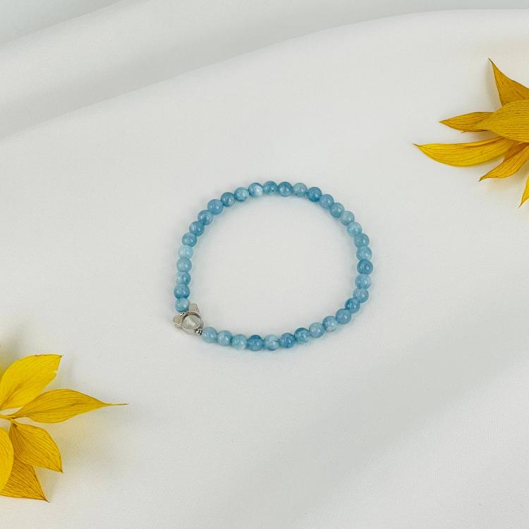 Браслет детский из Аквамарина и Лунного камня, 13 см – 16 см, 4,5 мм, гладкий, Бразилия