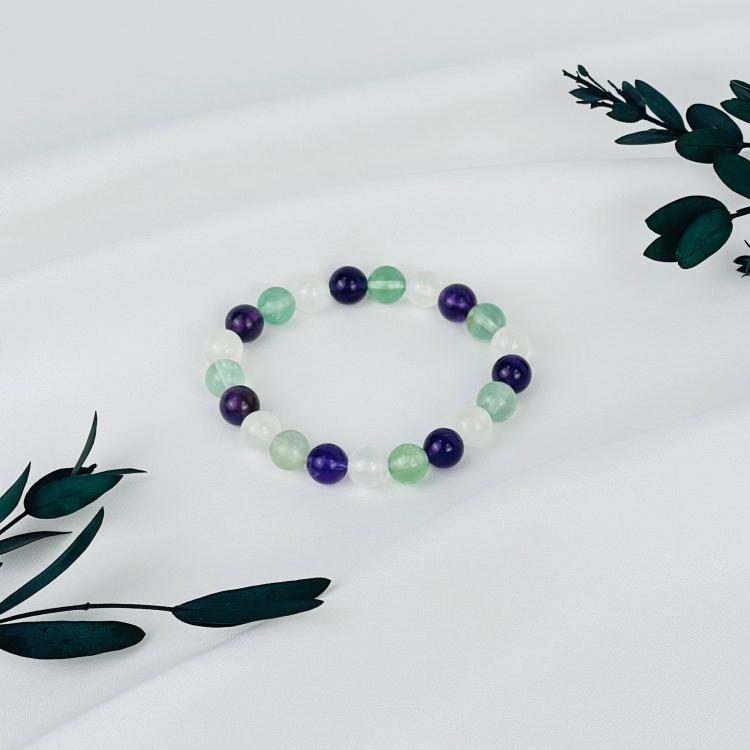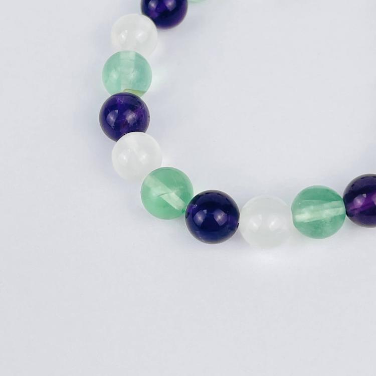 Браслет "Стихия Эфир" из Аметиста, Флюорита и Селенита, 16 см – 18 см, 8-8,5 мм, гладкий, Бразилия