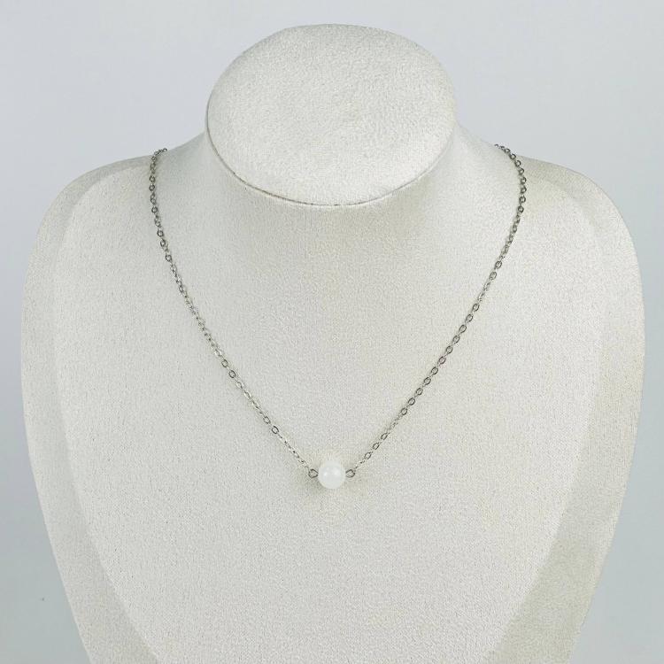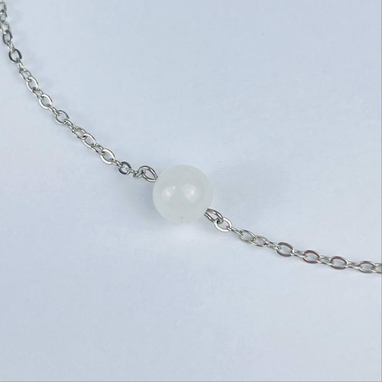Кулон на цепочке из белого Нефрита, 8 мм, гладкий, Россия
