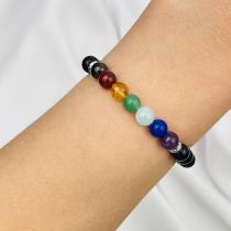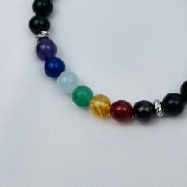 Браслет из "7 чакр" из Обсидиана и Самоцветов, 16 см – 19 см, 6,5 мм, гладкий, Мексика
