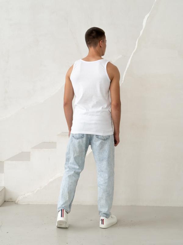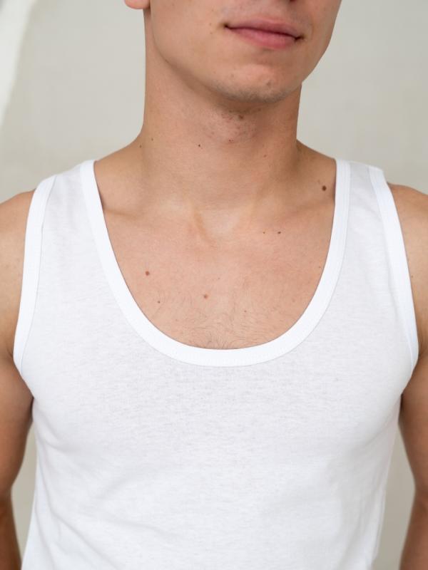 Майка мужская прилегающего силуэта с круглым вырезом на широких бретелях. Базовая майка из эластичного хлопка производства Турции, которую можно носить в любое время года, будет идеальной основой любого многослойного комплекта. Трикотаж не сковывает движения, при этом хорошо облегает фигуру и не вытягивается. Способность трикотажа хорошо пропускать воздух и сохранять тепло дает возможность чувствовать себя удобно и комфортно в течение всего дня. Майка представлена в трех цветах и в широком размерном ряде. Выберите майку в подарок близкому мужчине. Сделать выбор очень легко, так как в описании товара на странице каталога указаны параметры модели. Качество пошива изделия соответствует требованиям Госстандарта РФ. Этикетка промаркирована штрих кодами EAN 13.