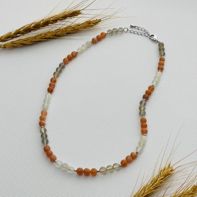 Бусы из Лунного камня микс, 42 см +, 5,5-6 мм, гладкий, Индия