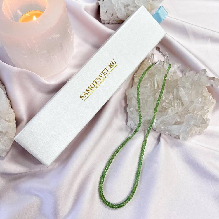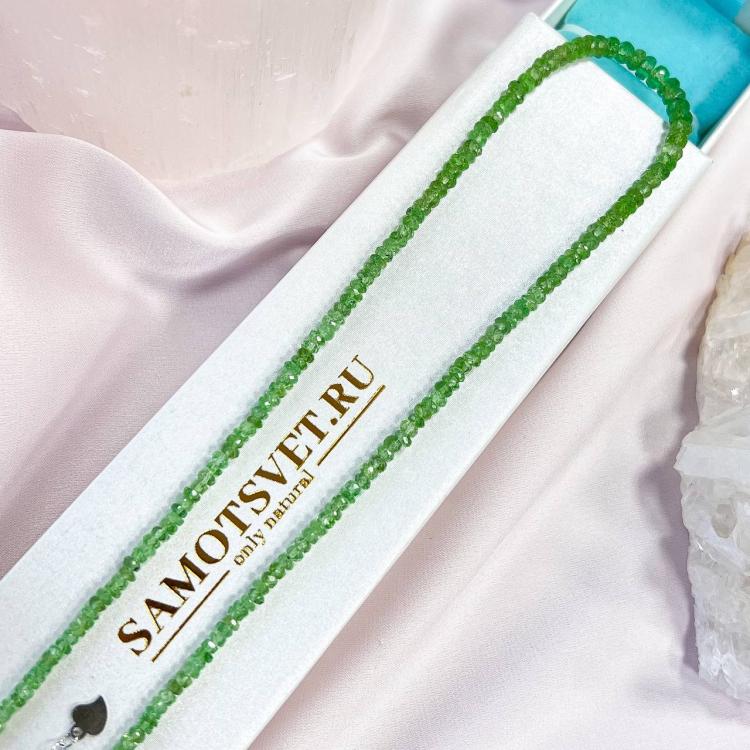 Бусы из зеленого Граната (Цаворит), 42 см +, 3-4 мм, граненый, Африка
