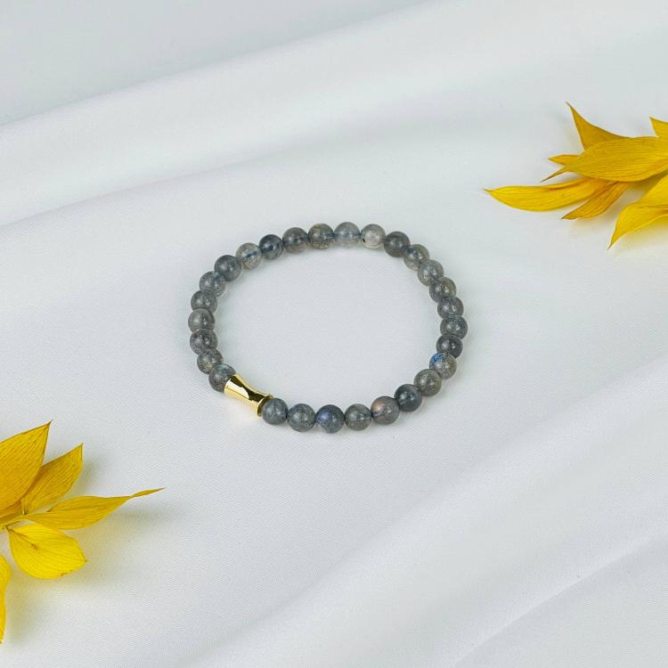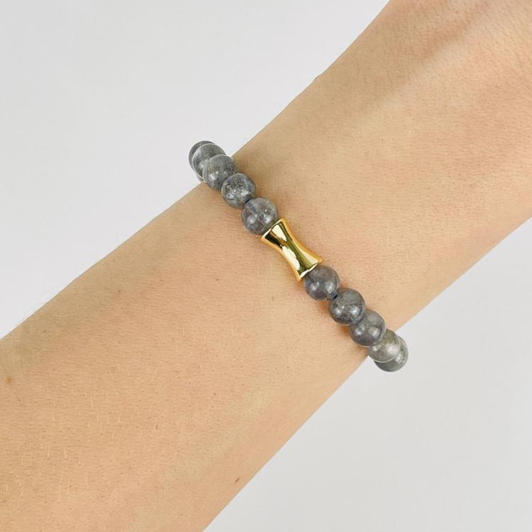 Браслет со вставкой из Лабрадора, 17 см – 19 см, 6,5 мм, гладкий, Мадагаскар