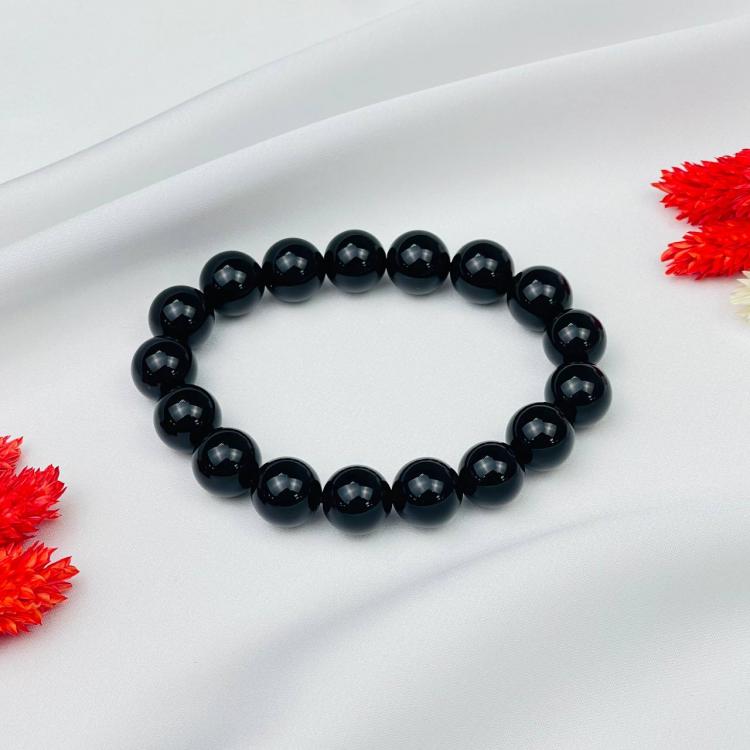 Браслет из Агата черного, 17 см – 19 см, 12 мм, гладкий, Бразилия