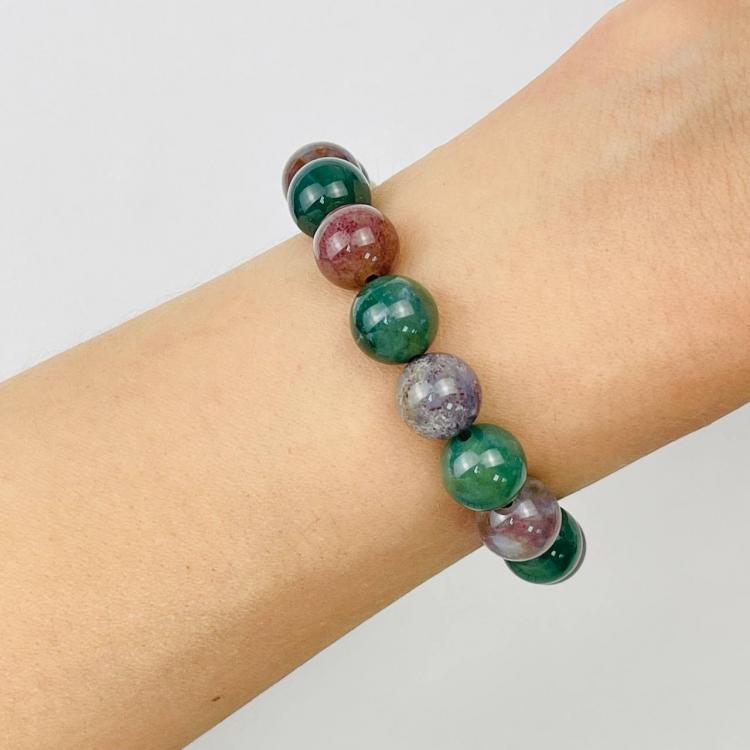 Браслет из камня Моховый агат, 18 см, 10-10,5 мм, гладкий, Индия