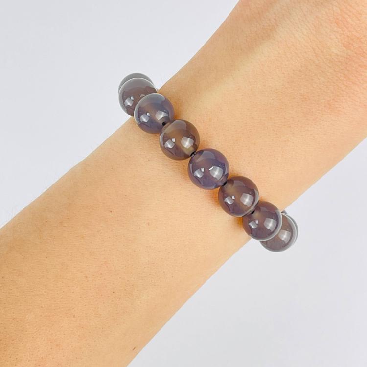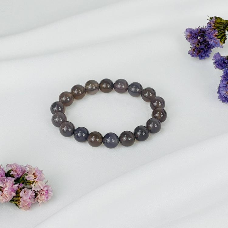Браслет из серего Агата, 16,5 см – 21 см, 10 мм, гладкий, Бразилия