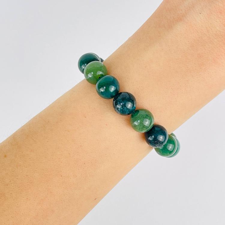 Браслет из Мохового агата, 17 см – 21 см, 10,5 мм, гладкий, Индия