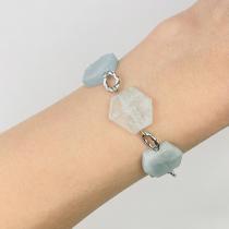 Браслет из Аквамарина, 17 см + – 19 см +, гладкий/Граненый, Бразилия