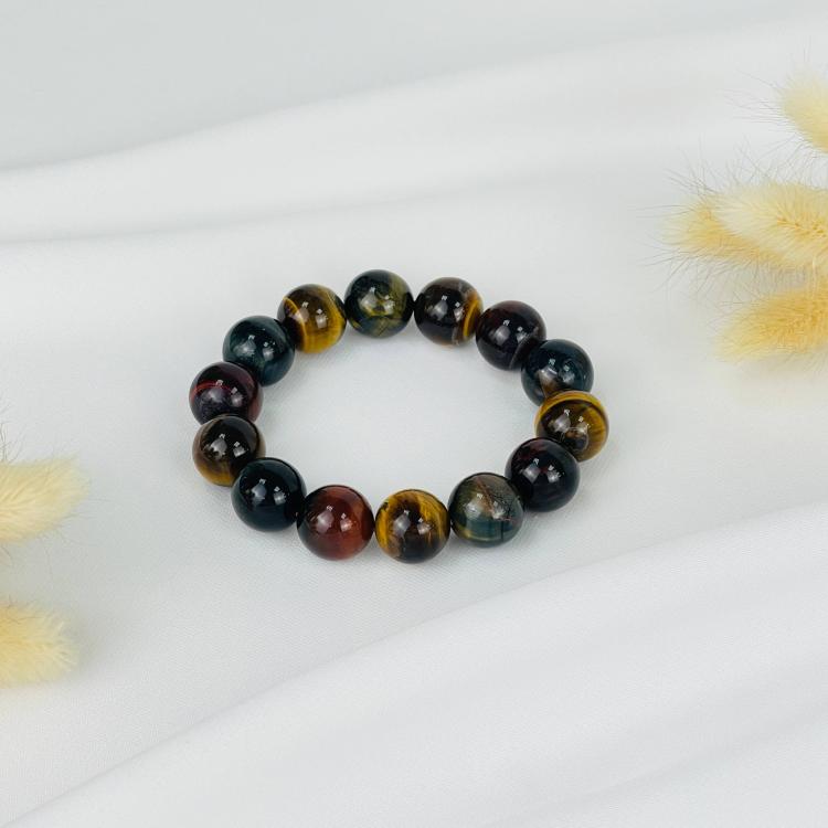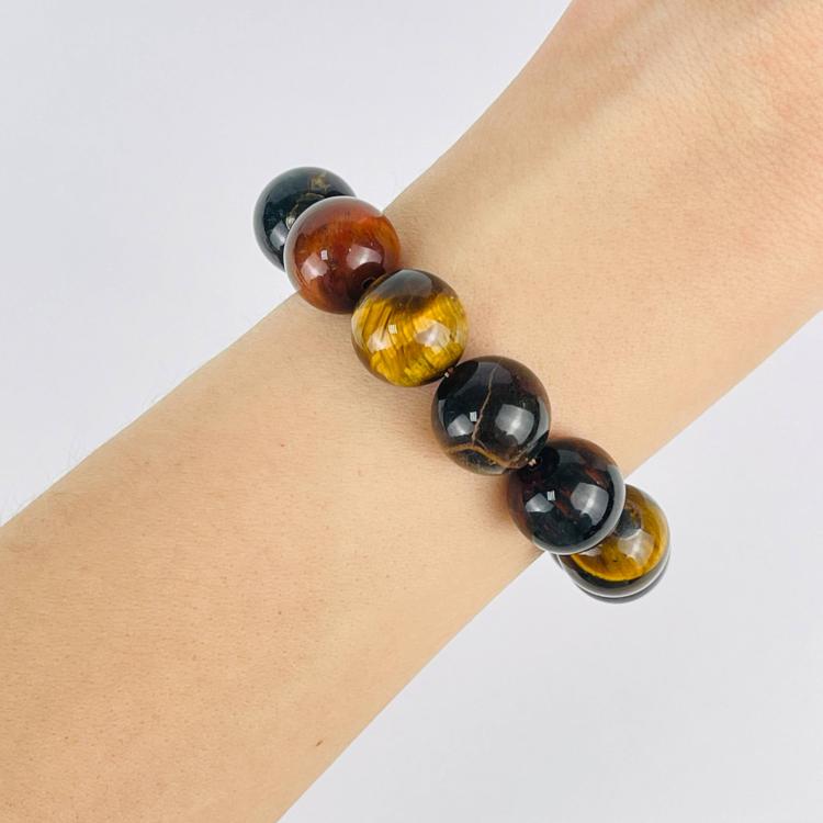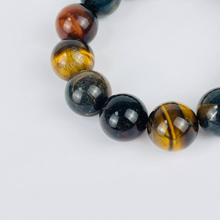 Браслет из Тигрового, Бычьего и Соколиного глаза, 17 см – 21,5 см, 14 мм, гладкий, Африка