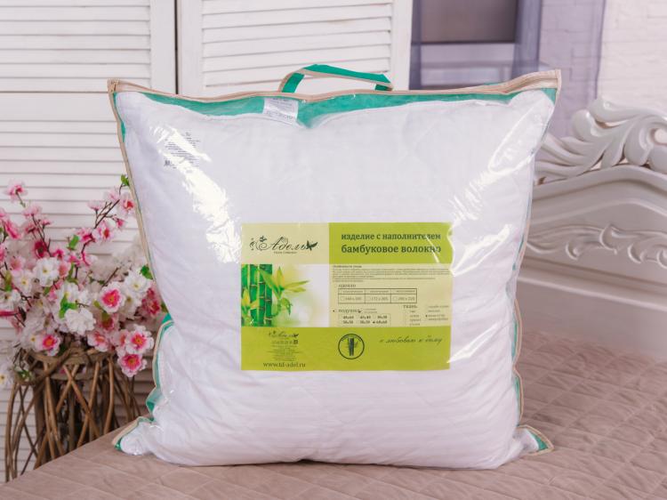 Подушка "Бамбук" страйп-сатин(бел) 68*68 (850г)на молнии лебпух+бамбук,стег,лента,сумка(Н)