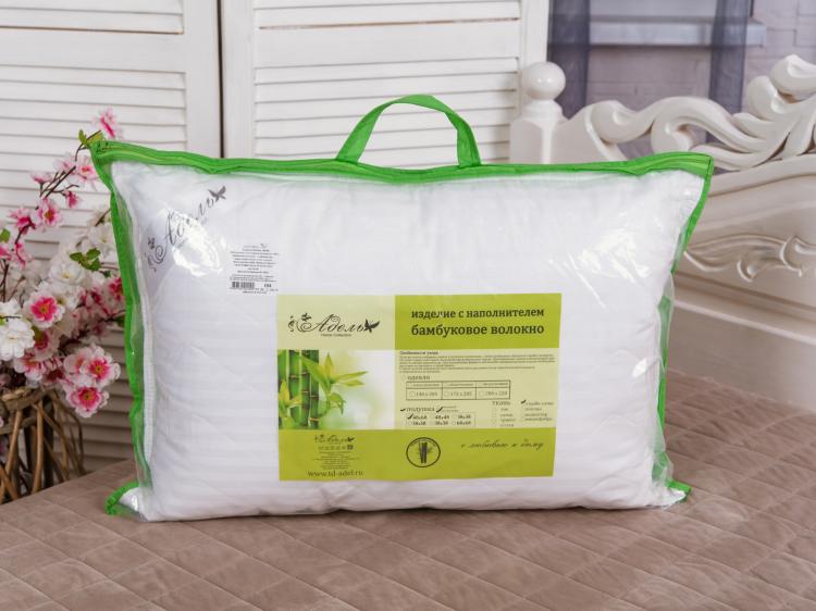 Подушка "Бамбук" страйп-сатин(бел) 48*68 (550г)на молнии лебпух+бамбук,стег,лента,сумка(Н)