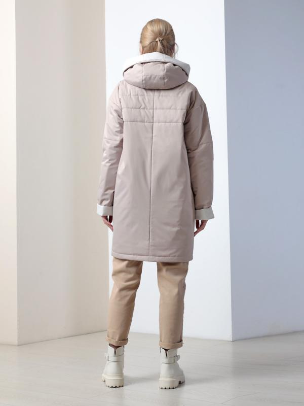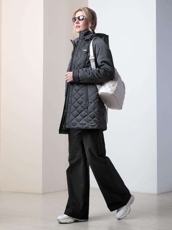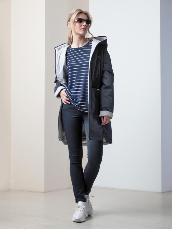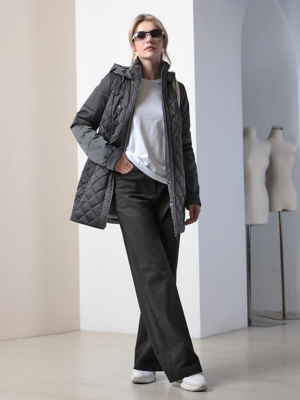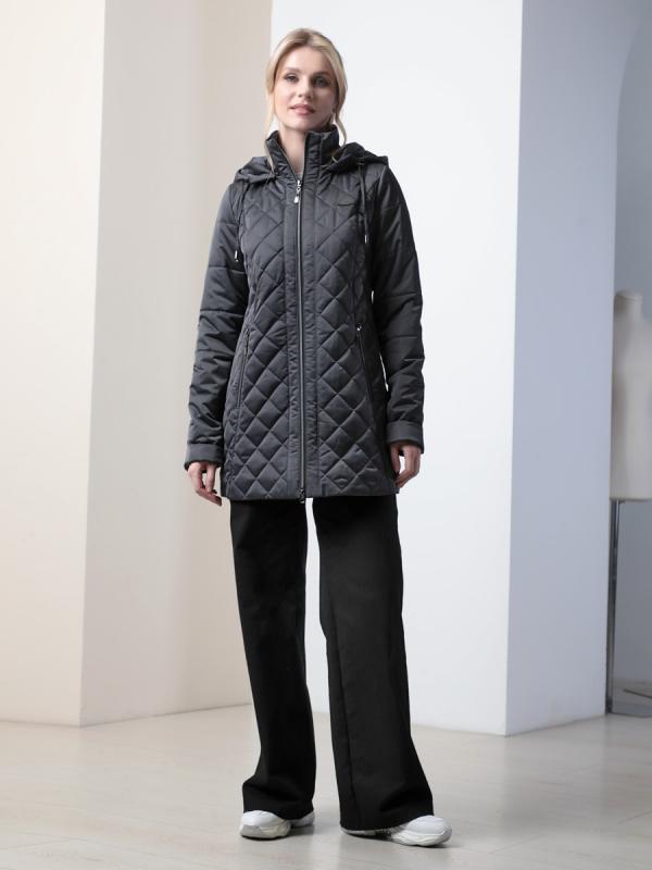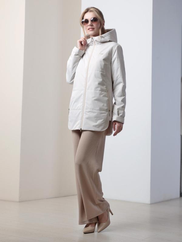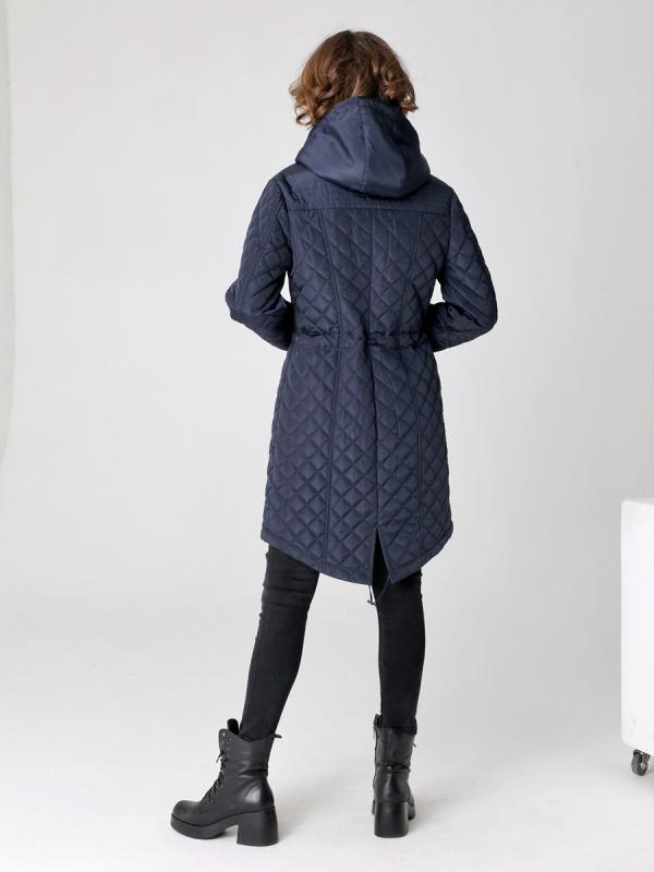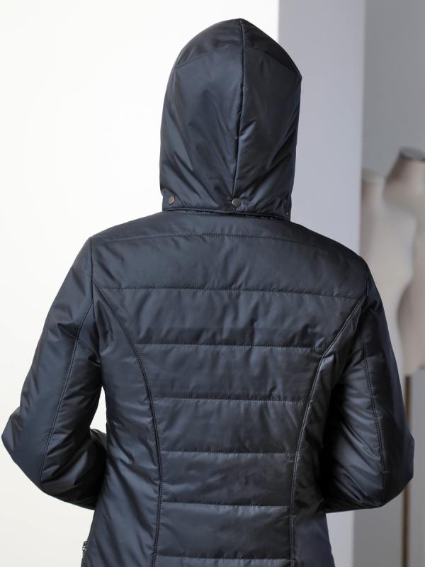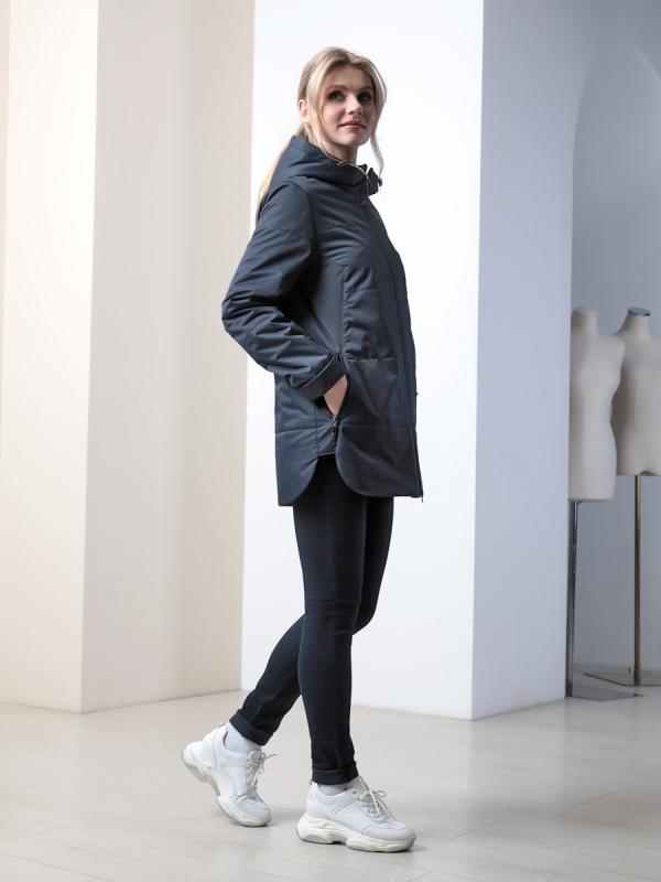 Демисезонная куртка-парка полуприлегающего силуэта с втачными рукавами и застежкой на двухзамковую молнию. Воротник - стойка, переходящая в регулируемый капюшон. Две пары прорезных карманов удобно расположены в рельефных швах