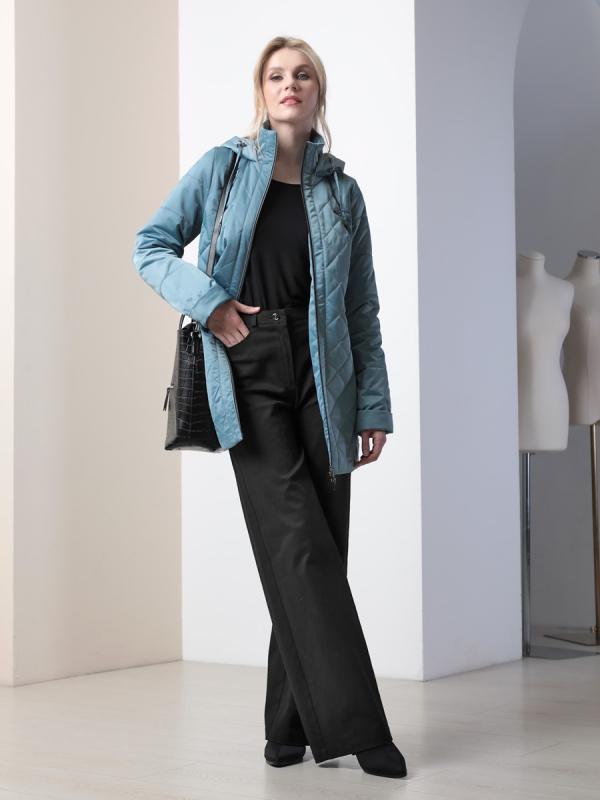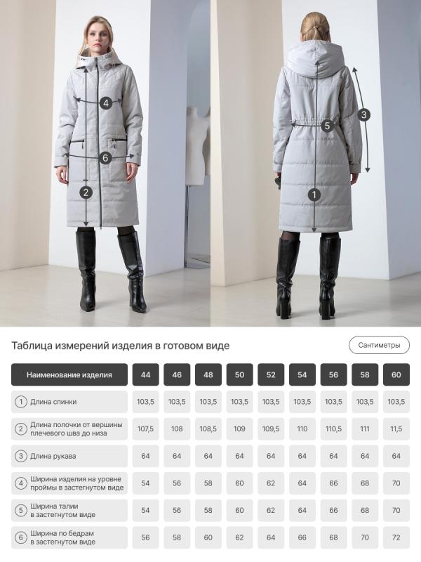 которая выдержит небольшой осенний дождь или снег. Утеплитель нового поколения ALPOLUX, в состав которого входит натуральная шерсть, плотностью 150 грм защитит от холода и ветра. Подкладка в изделии - в мелкую полоску. Широкий кожаный пояс на модели в серо-голубом пальто В КОМПЛЕКТ НЕ ВХОДИТ, но Вы можете фантазировать с имеющимися аксессуарами, тем самым внося разнообразие в стилистику изделия.