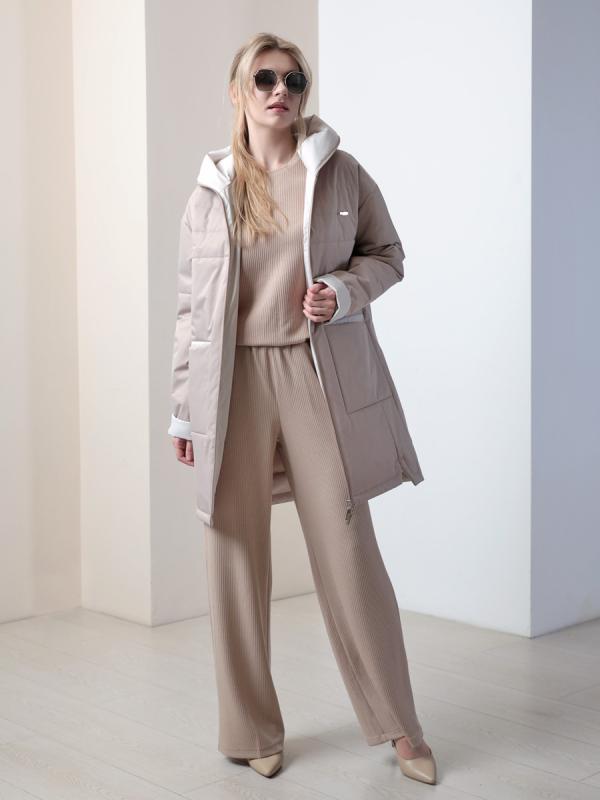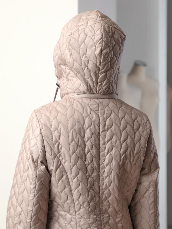 , плотностью 100грм, защитит от весенней прохлады. Подкладка в изделии выполнена из ткани в мелкую полоску. Утепленный плащ такой длины хорошо сочетается как с брюками, так и с юбкой или платьем, а с помощью обуви и аксессуаров Вы можете менять свой стиль.