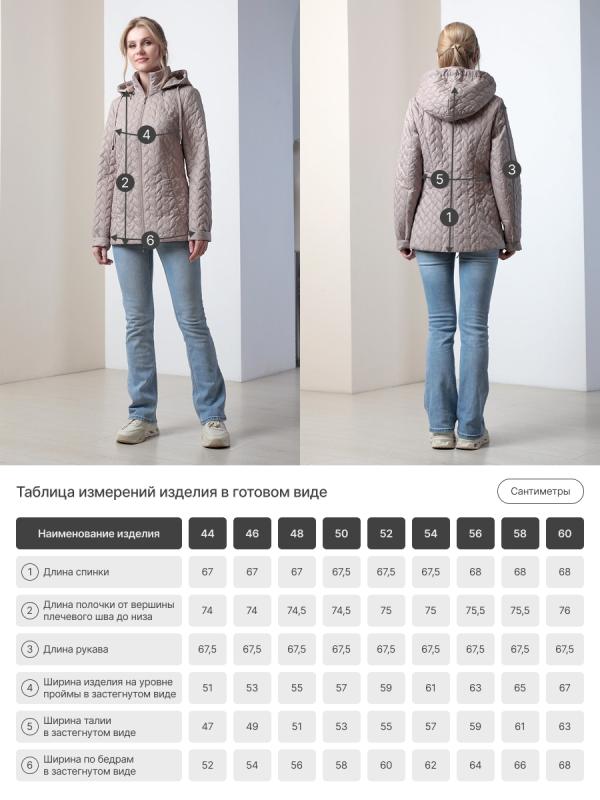 выручит Вас на прогулке, на отдыхе и в городе. Плащевая ткань имеет водоотталкивающую пропитку, которая выдержит небольшой дождь и легкий ветер. Хорошо зарекомендовавший себя утеплитель Холлофайбер плотностью 70 грм защитит от весенней прохлады. Подкладка в изделии - в мелкую полоску. Фантазируйте с обувью и аксессуарами, и эта лаконичная по стилю куртка порадует Вас поздней весной и прохладным летом.