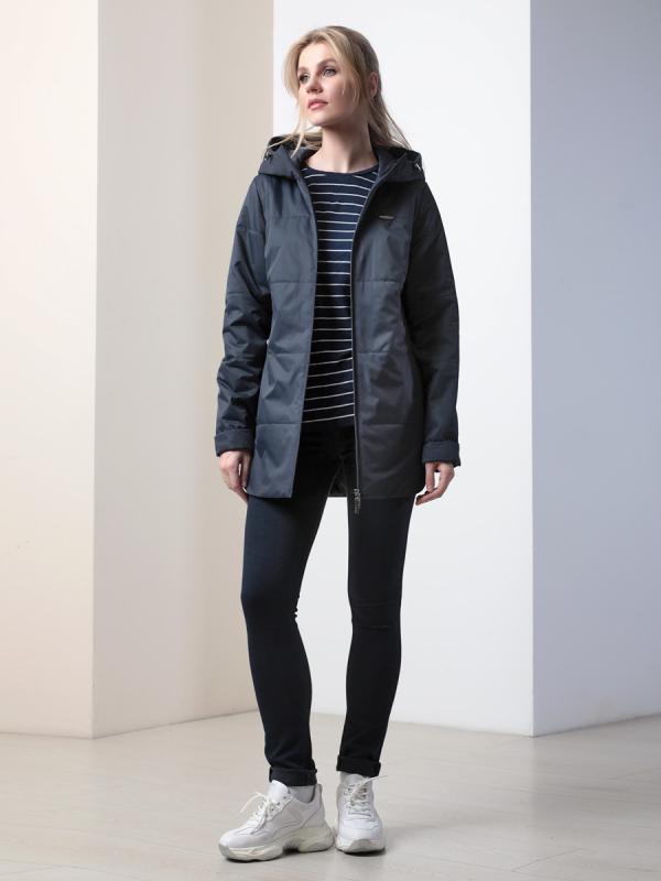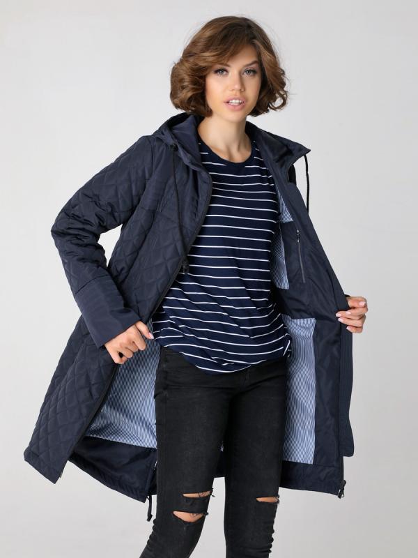 нижние застегиваются на кнопку. Есть внутренний кармашек на молнии. Дополнительное прилегание можно создать с помощью затяжки на линии талии. Эта стильная удлиненная куртка выручит Вас осенью, весной и ранней зимой. Плащевая ткань имеет водоотталкивающую пропитку, которая выдержит небольшой осенний дождь или снег. Хорошо зарекомендовавший себя утеплитель "
