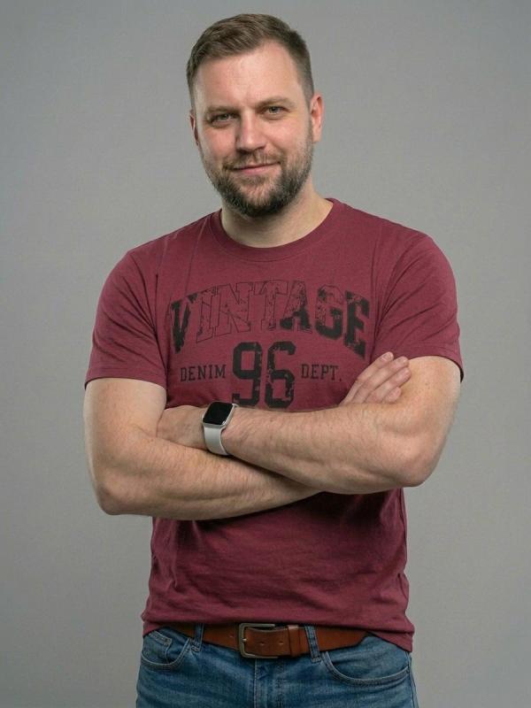 Мужская футболка F5, Regular fit (полуприлегающий силуэт), круглый вырез горловины, короткий рукав. Выполнена из классического трикотажного полотна.
