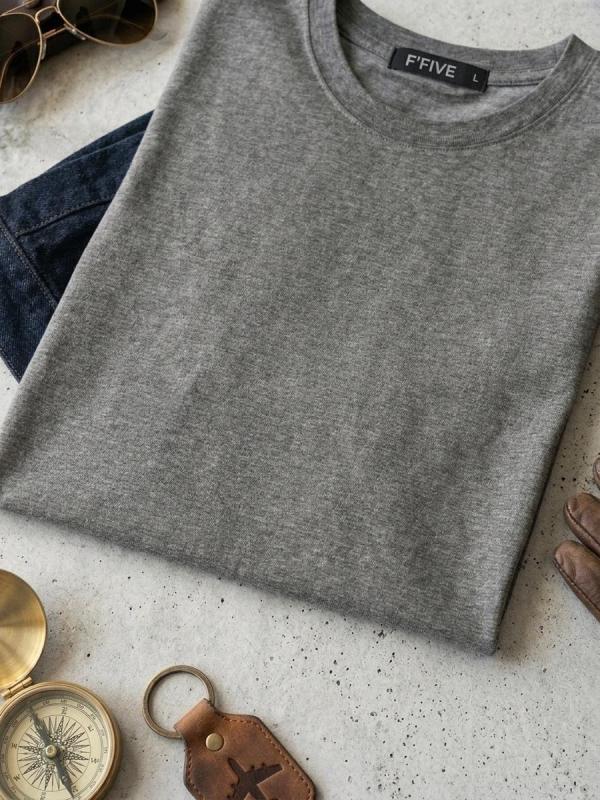 Женская футболка F5, Oversize fit (свободный силуэт), круглый вырез горловины, короткий цельнокроеный рукав. Выполнена из классического трикотажного полотна.