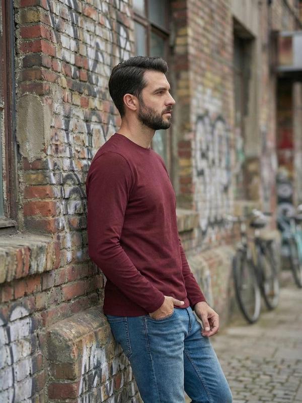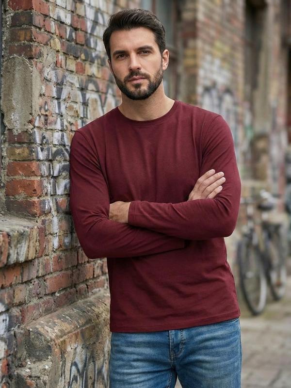 Мужская футболка F5, Regular fit (полуприлегающий силуэт), круглый вырез горловины, длинный рукав. Выполнена из классического трикотажного полотна.