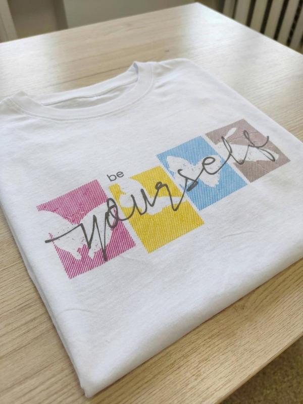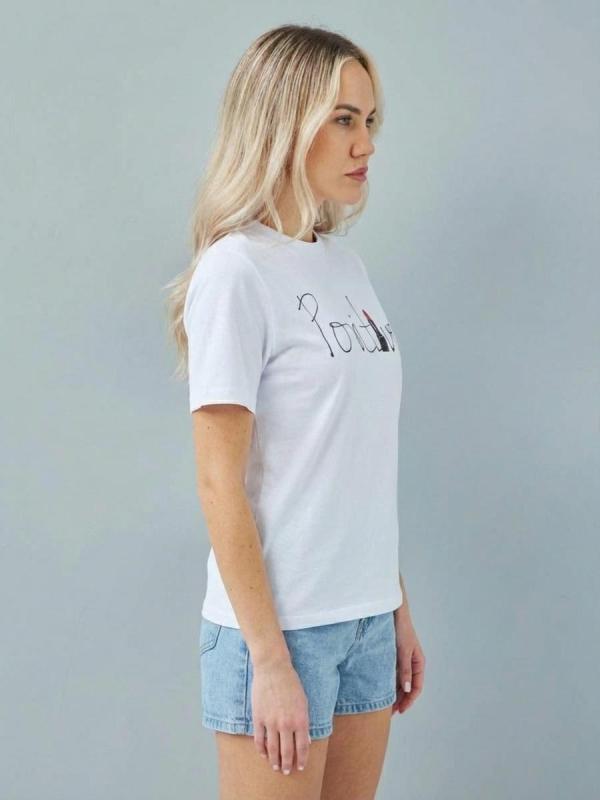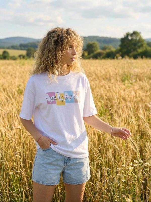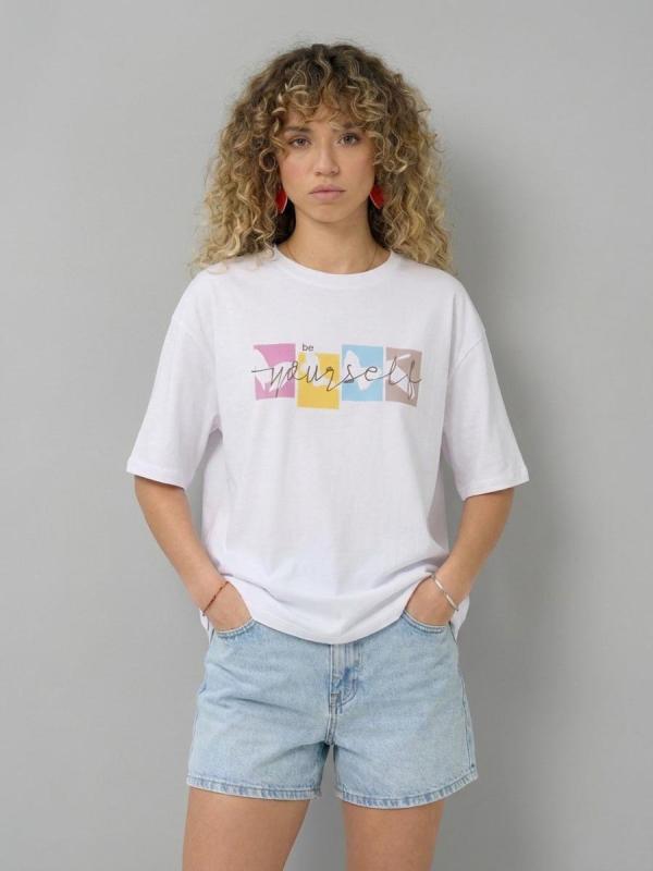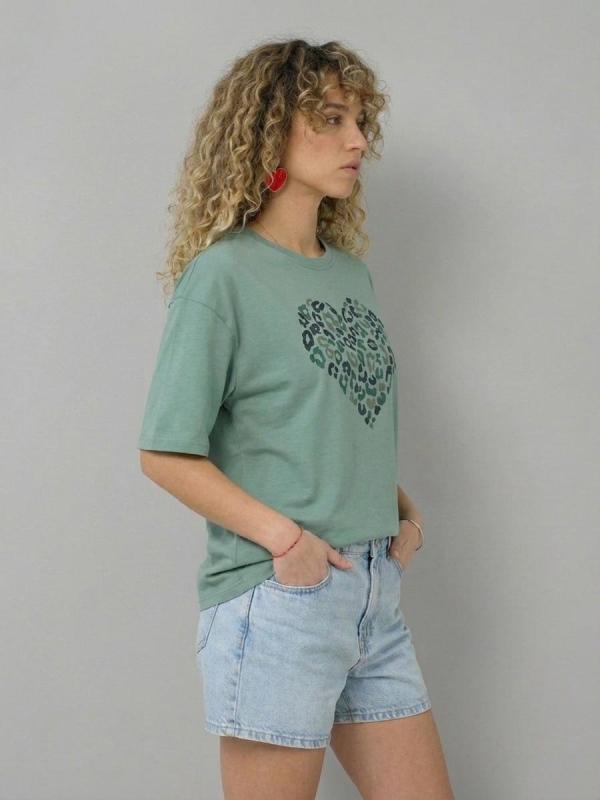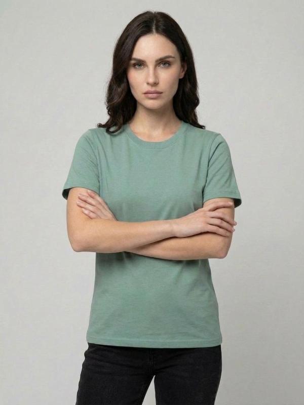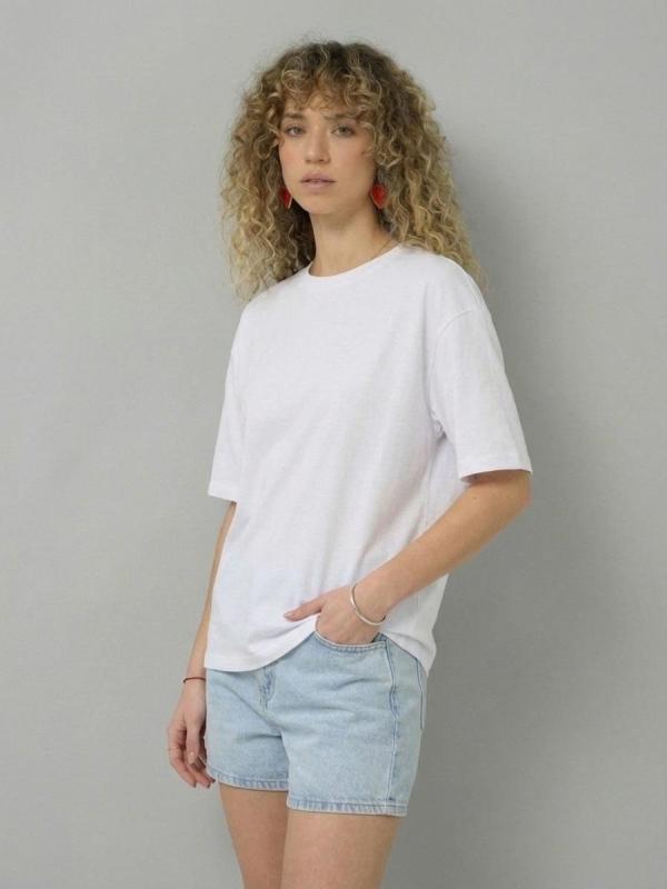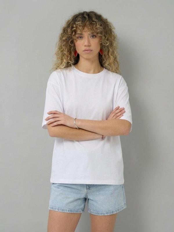 Женская футболка F5, Comfort fit (свободный силуэт), круглый вырез горловины, короткий рукав. Выполнена из классического трикотажного полотна.