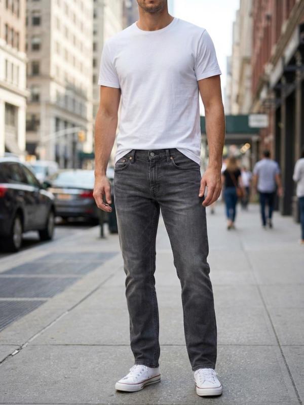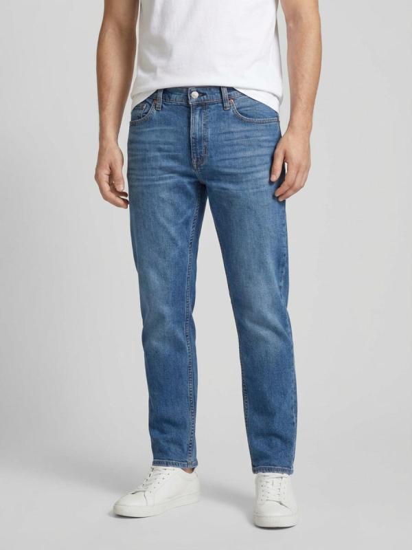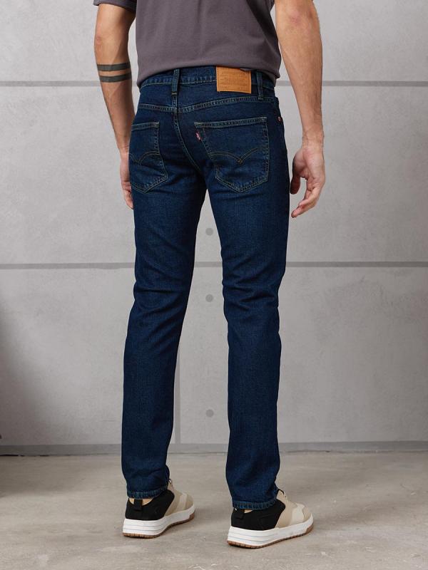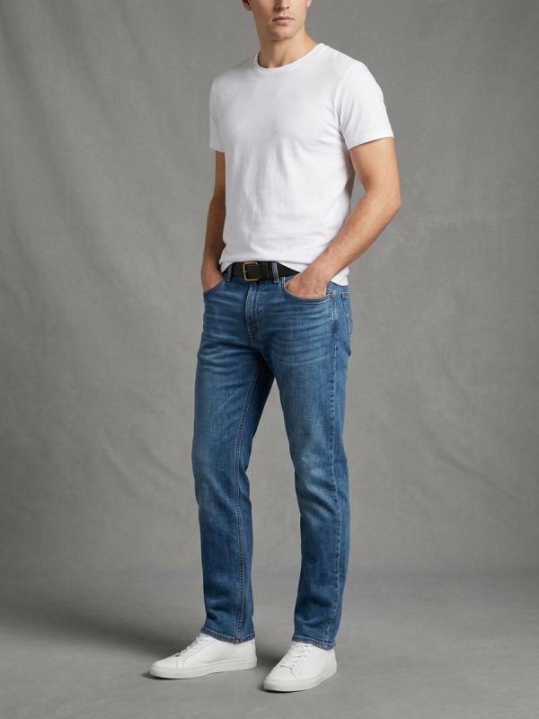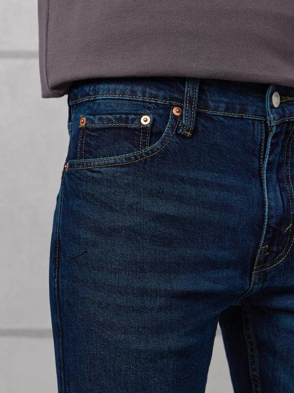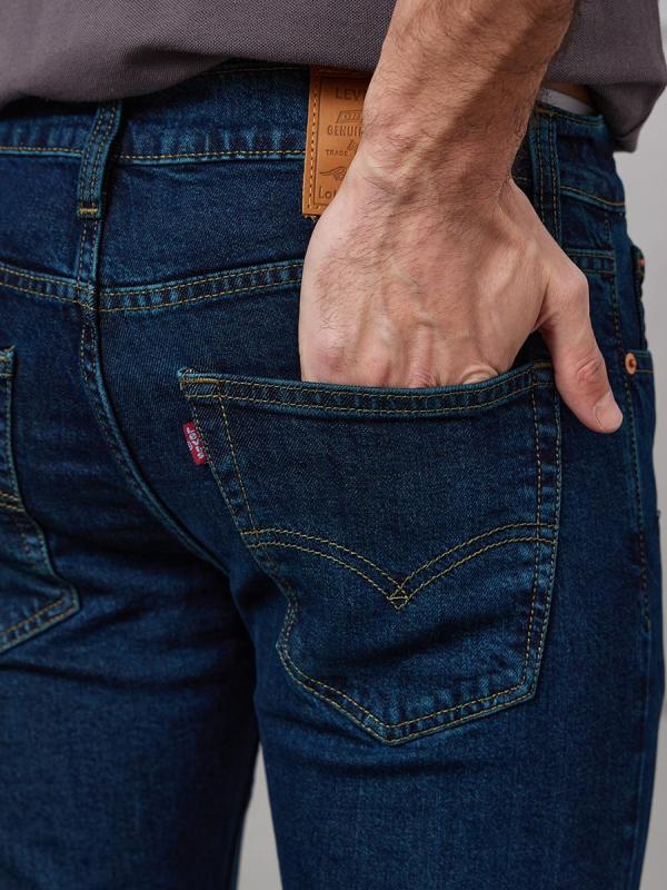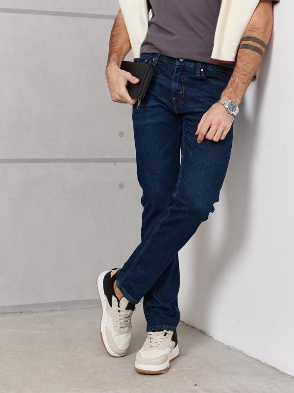 Мужские классические джинсы с пятью карманами. Посадка Slim fit (облегающие по бедру), средняя высота талии. Застежка на молнии. Немного зауженные к низу. Выполнены из эластичной ткани denim stretch, цвет ткани Blue-Black(лицевая сторона ткани темно-синяя, изнаночная сторона- черная). Темная стирка "
