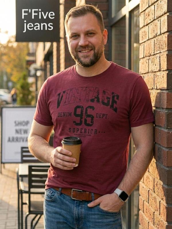 Мужская футболка F5, Comfort fit (свободный силуэт), круглый вырез горловины, короткий рукав. Увеличенный размерный ряд до размера 5XL