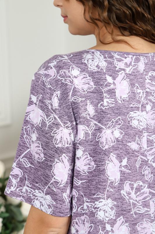 Туника молодежная из трикотажного полотна «кулирка» с набивным рисунком, прямого силуэта, с короткими втачными рукавами, горловиной овальной формы, обработанной притачной бейкой из основного материала, с разрезами в боковых швах. По центру полочки рядом с горловиной настрочен декоративный элемент-нашивка.
