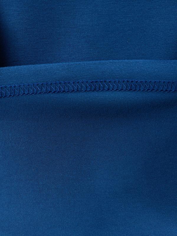 Брюки из трикотажного полотна «футер-двунитка», длинные, классического покроя, на притачном поясе с эластичной тесьмой внутри и карманами в боковых швах. Передние половины застрочены по линиям центра, на задних половинах обработаны две вытачки в области линии талии.