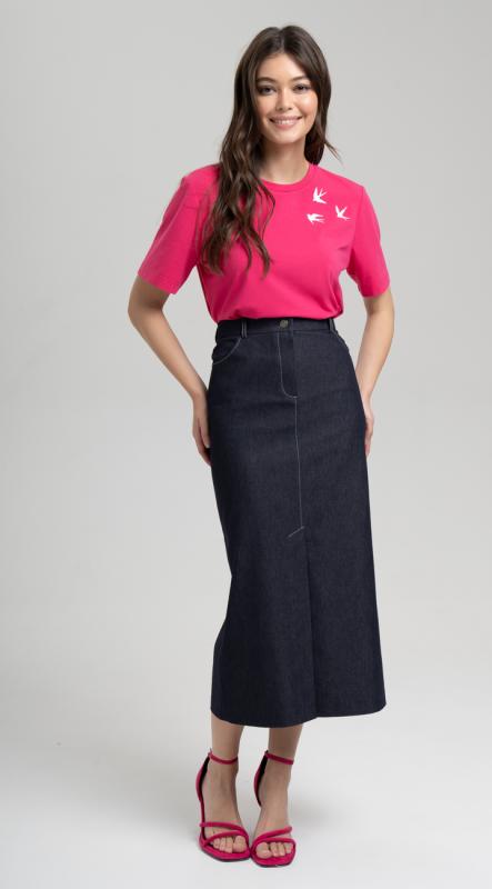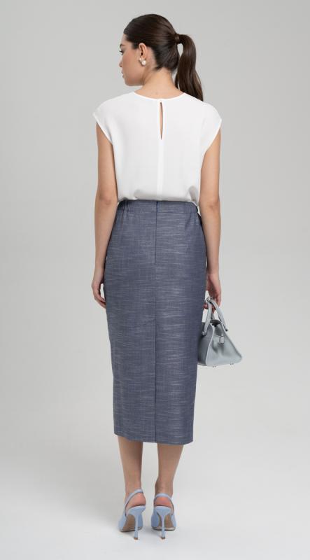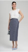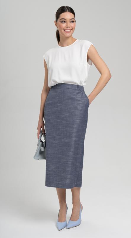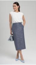 Юбка–карандаш, слегка зауженная к низу на поясе-кокетке и классической шлицей в среднем шве - уже давно стала базой офисного гардероба. В этом сезоне к ней особое внимание, в связи с трендом на деловой стиль. Потайная молния в среднем шве юбки. Юбка выполнена на подкладе.