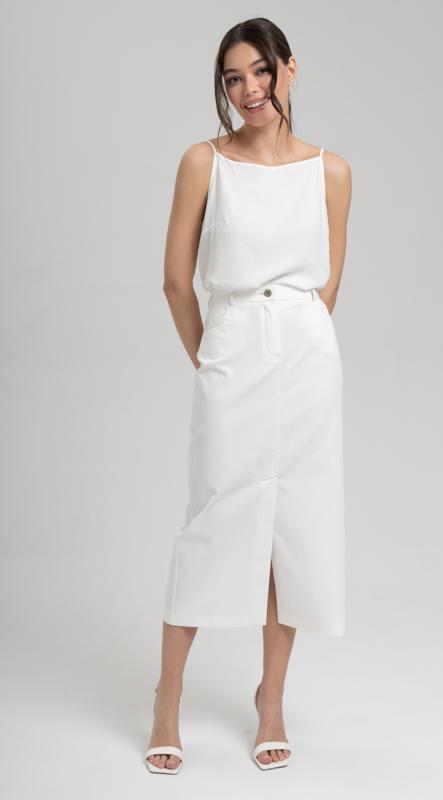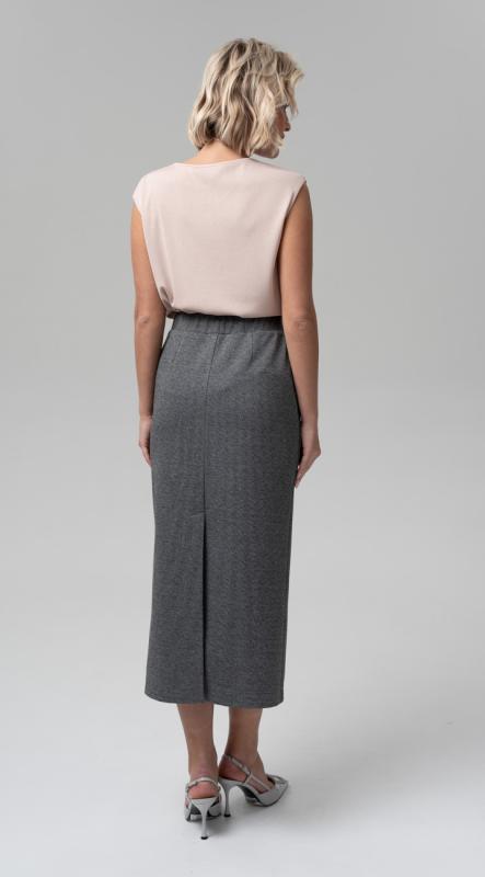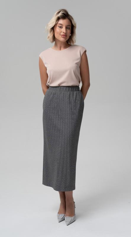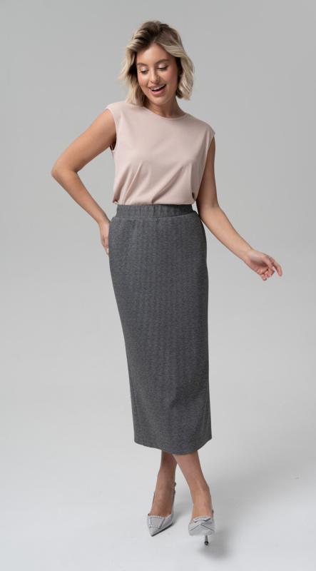 Прямая юбка-карандаш длиной midi с карманами и классической шлицей по задней половинке и на притачной эластичном поясе из комфортного трикотажного полотна - незаменимый элемент сезонного гардероба. Юбка на подкладе.
