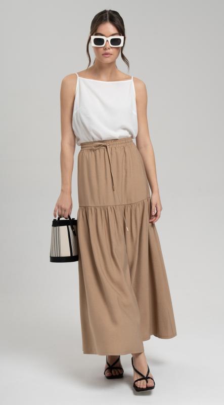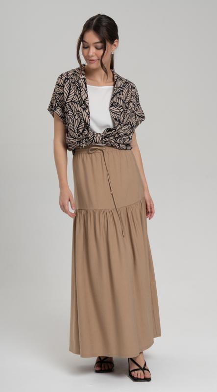 Длинная лаконичная юбка А-силуэта длиной midi подойдет для любого повода — от праздничного ужина до деловой встречи. Легкая поливискоза мягко струится вдоль тела. Эластичный пояс подчеркнет линию талии и подарит ощущение расслабленности и комфорта.