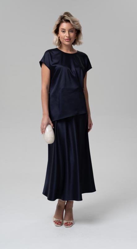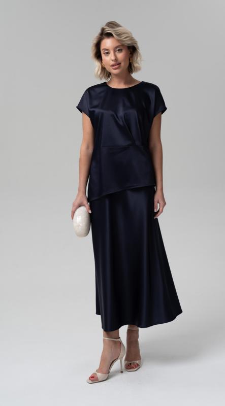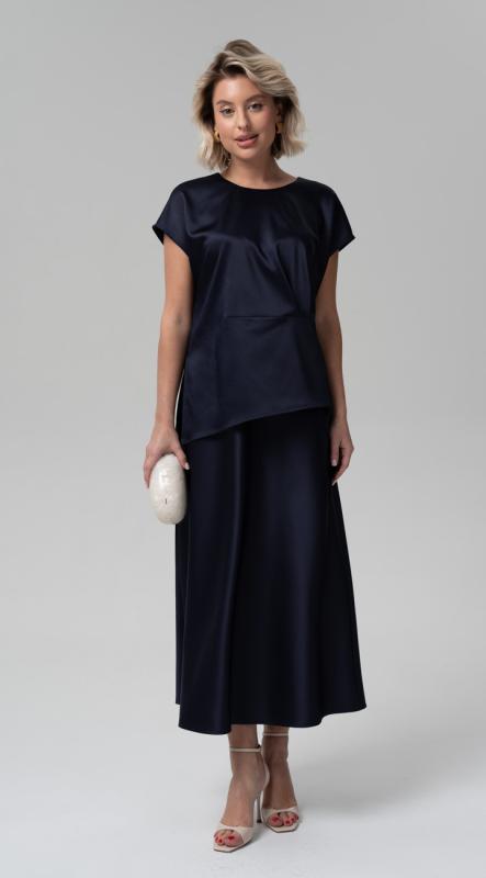 Эффектная блуза свободного силуэта с оригинальным подрезом и ассиметричным низом из премиального сатина подойдет для любого повода — от праздничного ужина до деловой встречи.