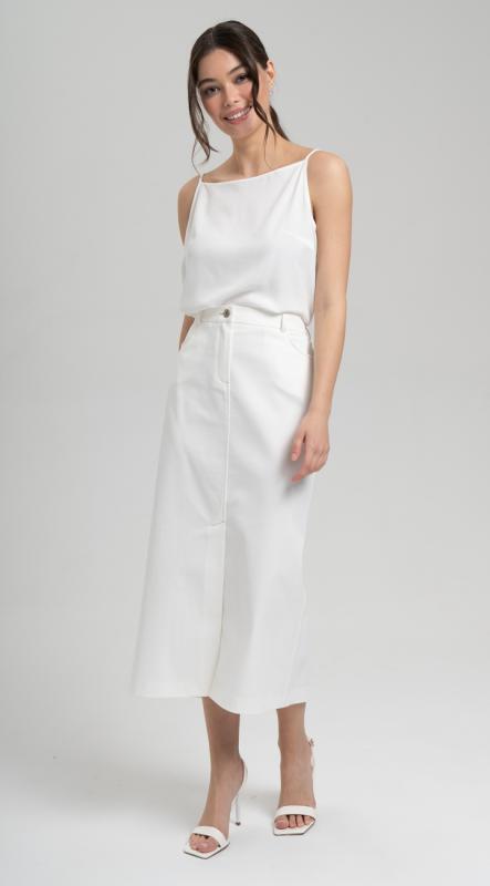 Топ прямого силуэта из материала Tencel® - невероятно женственный предмет гардероба, который мгновенно делает образ соблазнительным: модель на тонких бретелях изящно открывает плечи и спину.