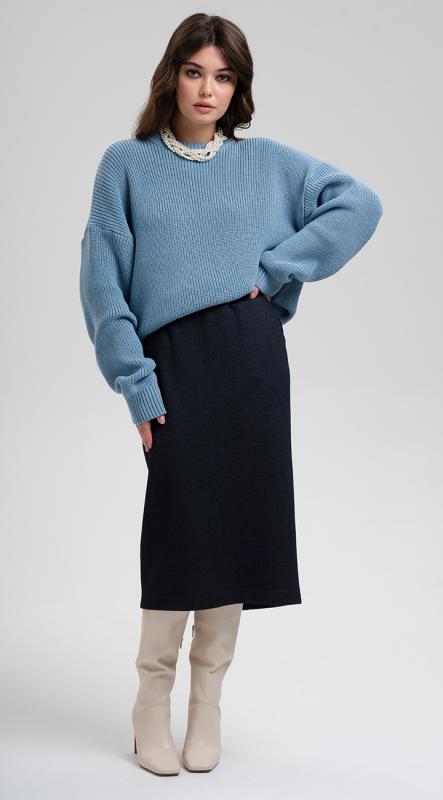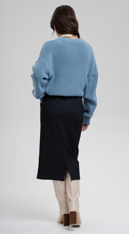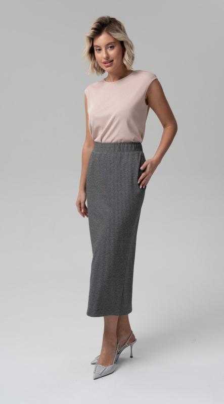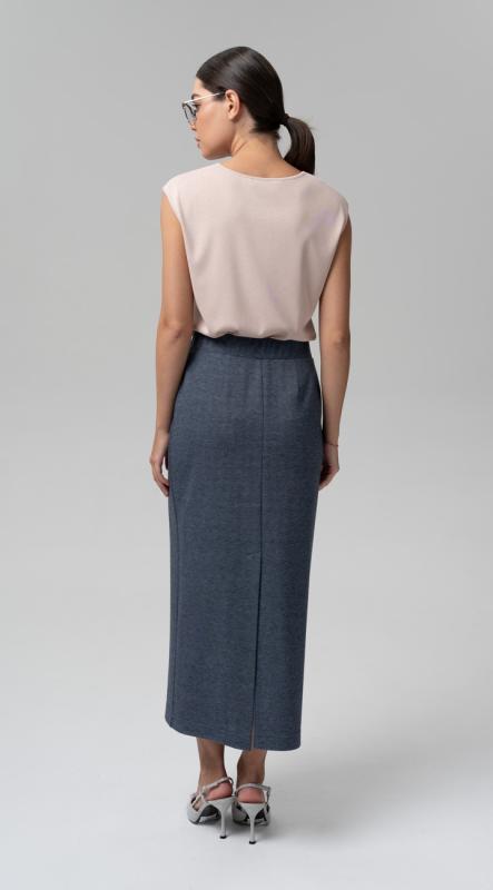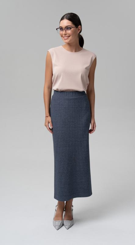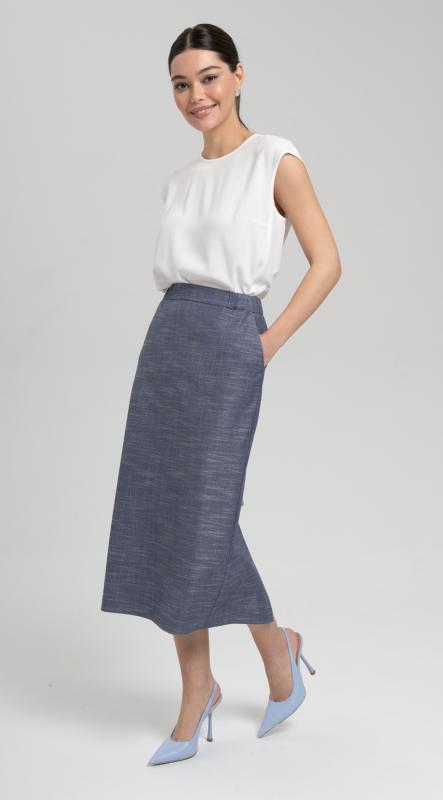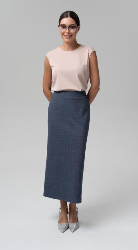 Прямая юбка-карандаш длиной midi с классической шлицей по задней половинке и на притачной поясе с резиной из трикотажного полотна - незаменимый элемент сезонного гардероба. Юбка на подкладе.