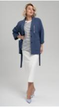 Укороченный двубортный жакет свободного кроя с отложным красивым воротником из костюмной поливискозы с хлопком в эффектную полоску - с легкостью впишется в базовый весенний гардероб, подчеркнув ваш безупречный вкус. Втачной широкий рукав рубашечного кроя полной длины. Застежка на петли и пуговицы.