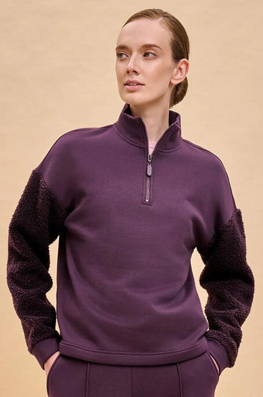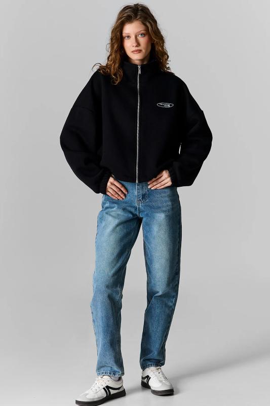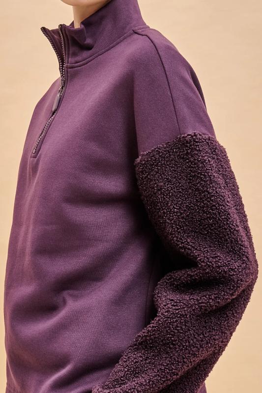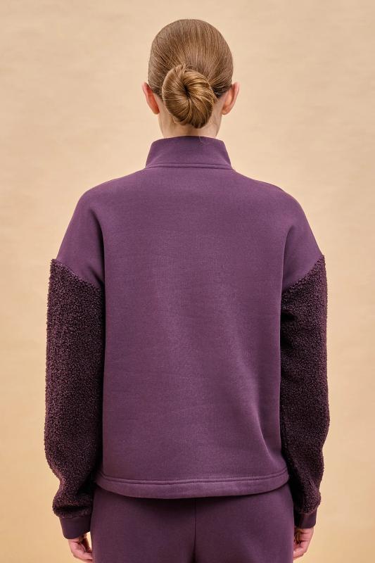 Стильный женский свитшот свободного силуэта со спущенным плечом. Толстовка без капюшона выполнена в комбинации двух материалов: гладкого футера и фактурного меха «барашек». Это актуальный модный тренд. Толстовка с воротником-стойкой. Он защитит от холода и ветра. Застёжка на короткую молнию — удобно и быстро застёгивать и расстёгивать. По низу удобная кулиска — можно регулировать объём и посадку. Свитшот однотонный, без принта. Изделие неприхотливо в уходе, его легко стирать, ткань быстро сохнет и не склонна к образованию катышков. В составе основной ткани (футкер с начесом) преобладает качественый хлопок — толстовка мягкая, отлично дышит. Рукава выполнены из мягкого и приятного на ощупь бербер-флиса (фактура «барашка»). Свитшот представлен в двух универсальных цветах: чёрном и молочном. Его легко сочетать с различными моделями брюк. Размерная линейка: XS (42): S (44): M (46): L (48). Толстовка идеальна как для женщин, так и для девушек и девочек-подростков. Подходит и высоким, и невысоким девушкам. Оверсайз