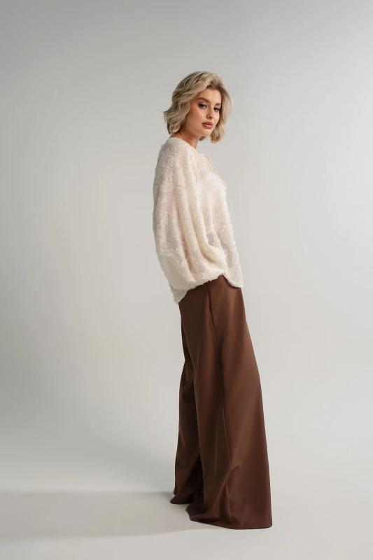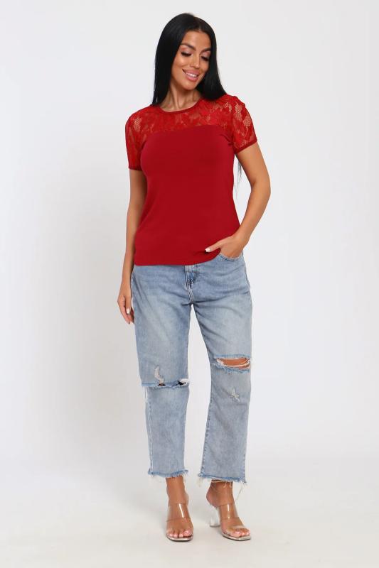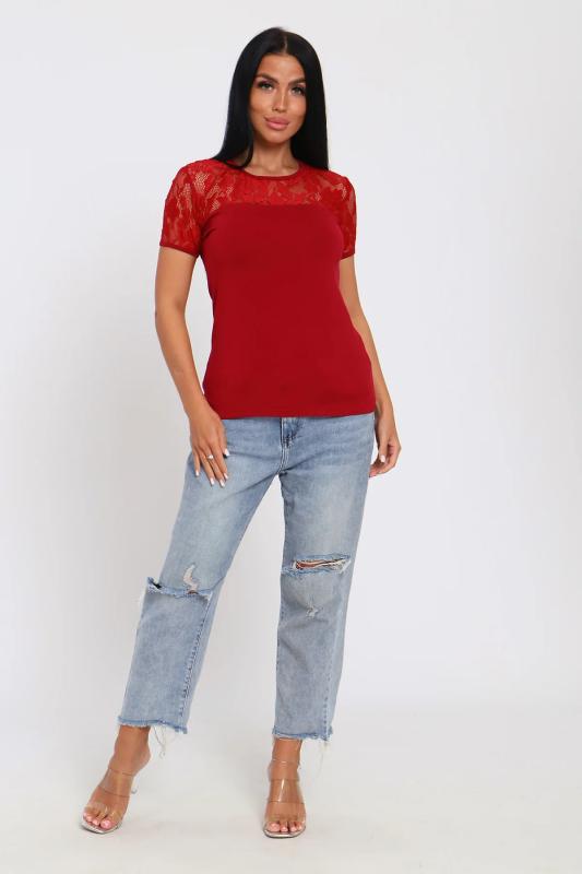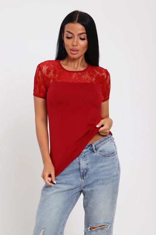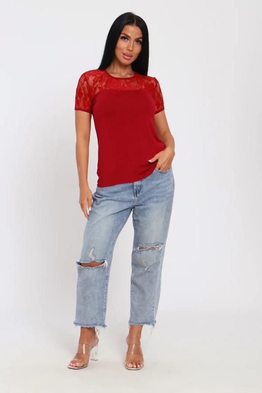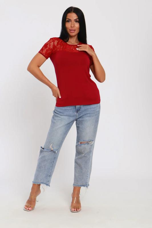 Джемпер из нежной вискозы. Приталенный крой, кружево на декольте и рукавах