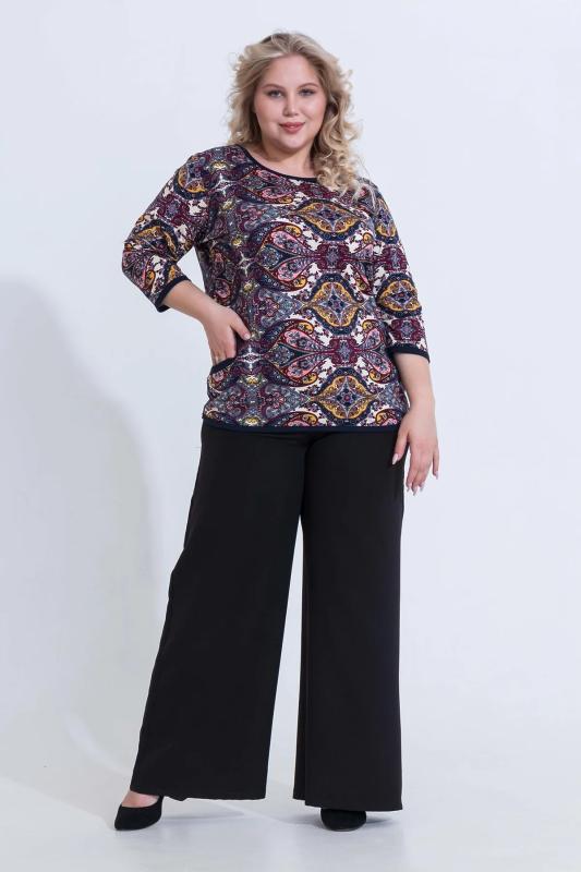 , которая освежит Ваш повседневный образ. Благодаря свободному силуэту блузка скроет недостатки фигуры и добавит воздушности образу. Блуза имеет функциональные завязки снизу, что позволяет регулировать длину.Элегантная блузка органично впишется в деловой и повседневный гардероб. Она отлично смотрится с прямыми брюками, джинсами, шортами. Для создания более женственного образа блузку можно надеть с узкой юбкой. Выбор обуви зависит от стиля созданного комплекта: это могут быть туфли на высоком каблуке или лоферы, ботильоны или босоножки. Рост модели – 171 см. Длина изделия: 46 размер – 63 см, 48 размер – 65 см, 50 размер – 65 см, 52 размер – 65 см, 54 размер – 66 см, 56 размер – 66 см.