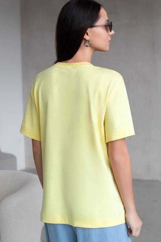 Футболка оверсайз идеальный выбор для создания повседневного образа. Свободный крой модели обеспечивает комфорт и удобство при носке. Широкий покрой футболки позволяет чувствовать себя свободно и не скованно. Эта футболка станет незаменимой вещью в вашем гардеробе. Она подходит для создания разнообразных образов от спортивных до более расслабленных городских. Сочетайте её с любимыми джинсами или юбкой, чтобы создать стильный и современный лук. Футболка изготовлена из качественных материалов, которые обеспечивают долговечность и сохранение первоначального вида даже после многочисленных стирок. Благодаря своему универсальному дизайну, эта футболка легко впишется в любой гардероб и станет основой для создания множества образов.