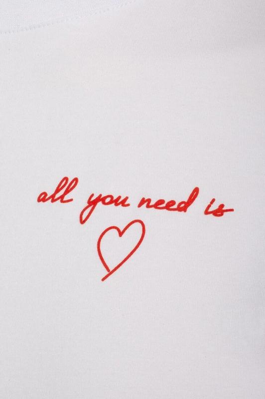 Модная футболка белого цвета привлекает внимание своим интересным дизайном и ярким принтом. Благодаря прямому крою изделие комфортно садится на любую фигуру, в том числе на большие размеры, и не сковывает движений. Круглый вырез подчеркивает современный стиль, а натуральный материал из хлопка с добавлением эластана обеспечивает удобство в повседневной носке и приятные тактильные ощущения. Прочность и износостойкая структура позволяют сохранять свежий внешний вид после множества стирок. Принт в виде надписи и сердца нанесен красками с устойчивым покрытием, перевод надписи: Al you need is love- Все, что вам нужно это любовь. Стильная футболка гармонично вписывается в любой гардероб и подойдет для прогулок, отдыха или неформальных встреч. Благодаря особенностям кроя модель хорошо сидит, скрывая недостатки и подчеркивая достоинства. Яркая футболка идеально сочетается с базовыми вещами, позволяя создавать новые интересные образы каждый день.