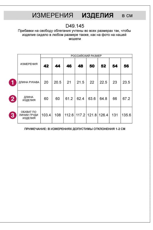 длина рукава (от плечевого шва) – 50 см.