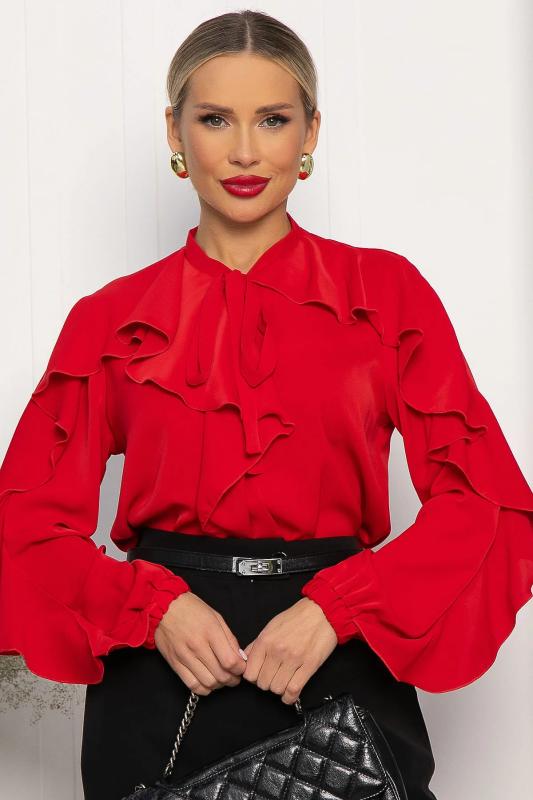 Состав : 95% полиэстер, 5% эластан Материал : блузочный Цвет : красный Принт : отсутствует Силуэт : свободный Карманы : отсутствуют Подкладка : отсутствует Вид застежки : по горловине завязка Декоративные элементы : воланы спереди и по рукавам Длина : 44 - 63 см,, 46 - 64 см,, 48 - 65 см,, 50 - 66 см,, 52 - 67 см,, 54 - 68 см Обхват груди : 44 - 98, 46 - 102, 48 - 106, 50 - 110, 52 - 114, 54 - 118 Обхват бёдер : 44 - 106, 46 - 110, 48 - 114, 50 - 118, 52 - 122, 54 - 126 Обхват талии : 44 - 102, 46 - 106, 48 - 110, 50 - 114, 52 - 118, 54 - 122 Дополнительные параметры размеров : 44 - длина рукава Отснято с брюками Б13889-33МВстречайте новый must-have в гардеробе — элегантную блузку, созданную для тех, кто ищет комфорт и безупречный стиль каждый день. Длинные рукава заканчиваются резинкой, а V-образный вырез добавляет образу утонченности. Воланы по рукавам и переду придают модели романтичности и изящества. Сочетайте блузку с джинсами, брюками или юбкой-карандаш, чтобы создать деловой образ для офиса или наряд