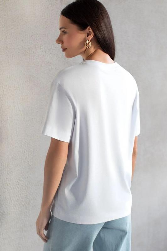 Женская базовая футболка из 100% натурального хлопка идеальной длины. Маст-хэв женского гардероба. Универсальная модель свободного покроя умеренный оверсайз с короткими рукавами и округлым вырезом горловины будет прекрасно смотреться с джинсами, брюками и юбкой, ее можно надеть в офис под кардиган или пиджак. Стильная футболка для повседневной носки, спортивная майка для бега и йоги, футболка для фитнеса - гигроскопична и не сковывает движений. Вместе с велосипедками - современная физкультурная форма для девушек. Всегда актуальная в качестве подарка на любой праздник, так как является универсальной.