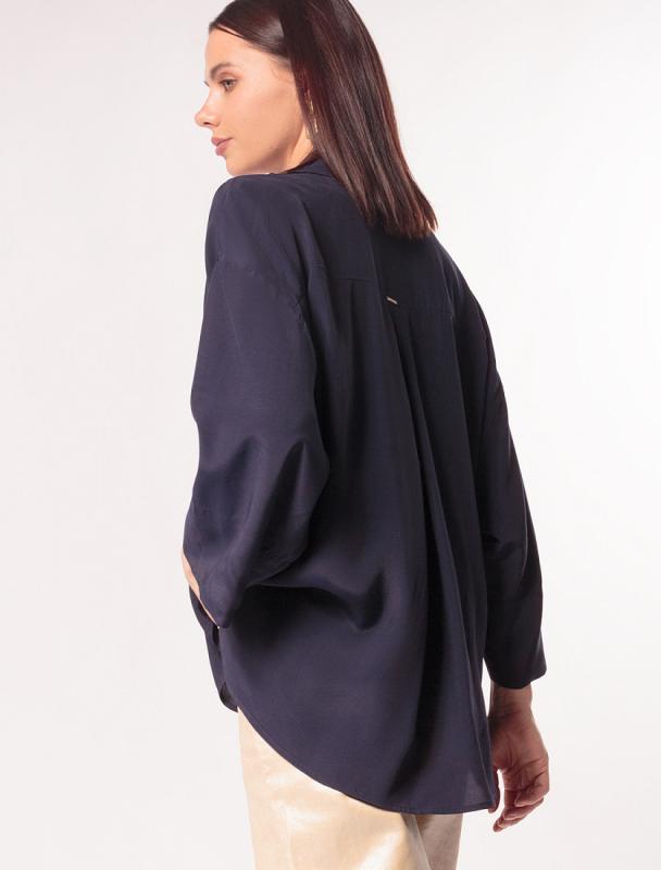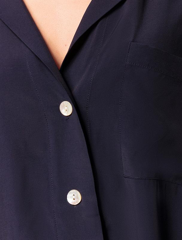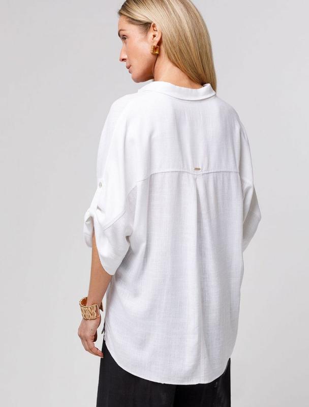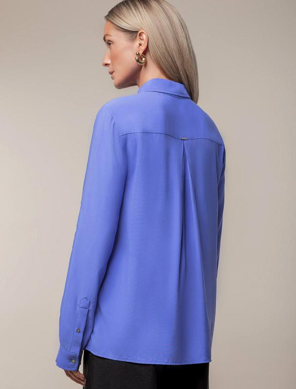 Блузка с имитацией карманов и удлиненными манжетами выполнена из премиальной вискозы и лиоцелла. На спинке изделия фирменный логотип бренда. Имитация карманов позволяет этому элементу выглядеть аккуратно без складок и фалд, которые вероятны на такой пластичной ткани.Застежка на золотистые пуговицы. Приятная на ощупь ткань охлаждает кожу в жаркую погоду. Отлично впишется в нестрогий офисный дресс-код или в расслабленном повседневном образе с джинсами.