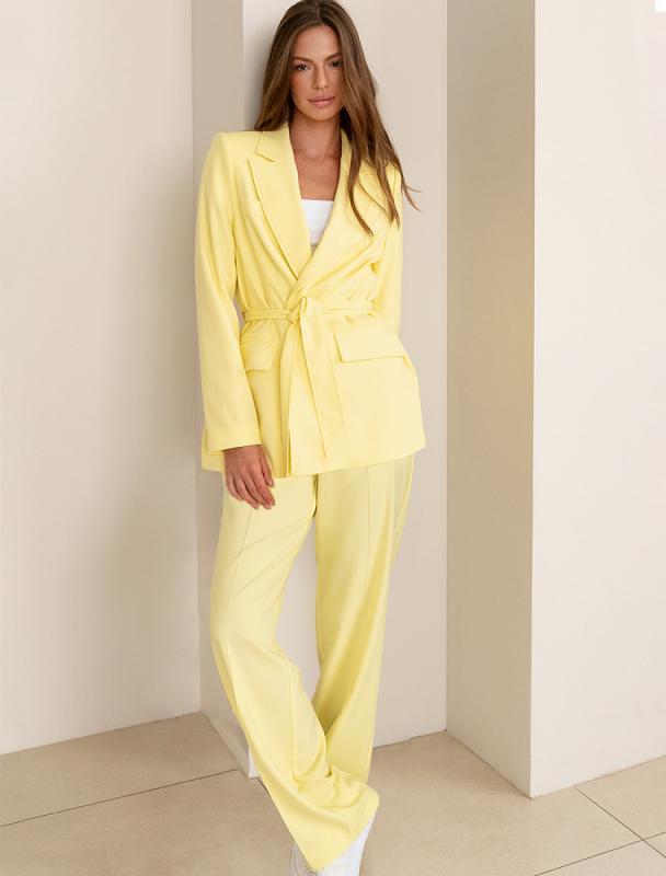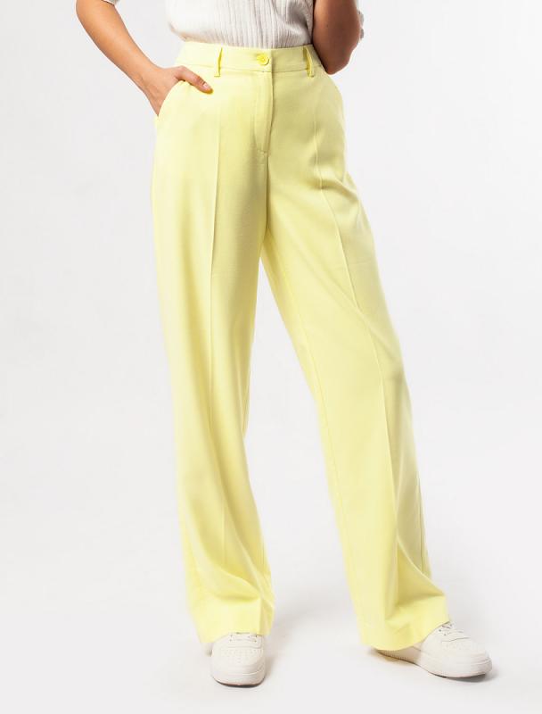 Прямые брюки выполнены из трикотажа джерси средней плотности. Модель дополнена боковыми карманами и поясом на резинке сзади. Заутюженные стрелки визуально вытягивают силуэт. Изделие хорошо держит форму, отлично тянется и почти не мнется во время использования. Идеальный вариант в офис или в повседневный классический стиль.