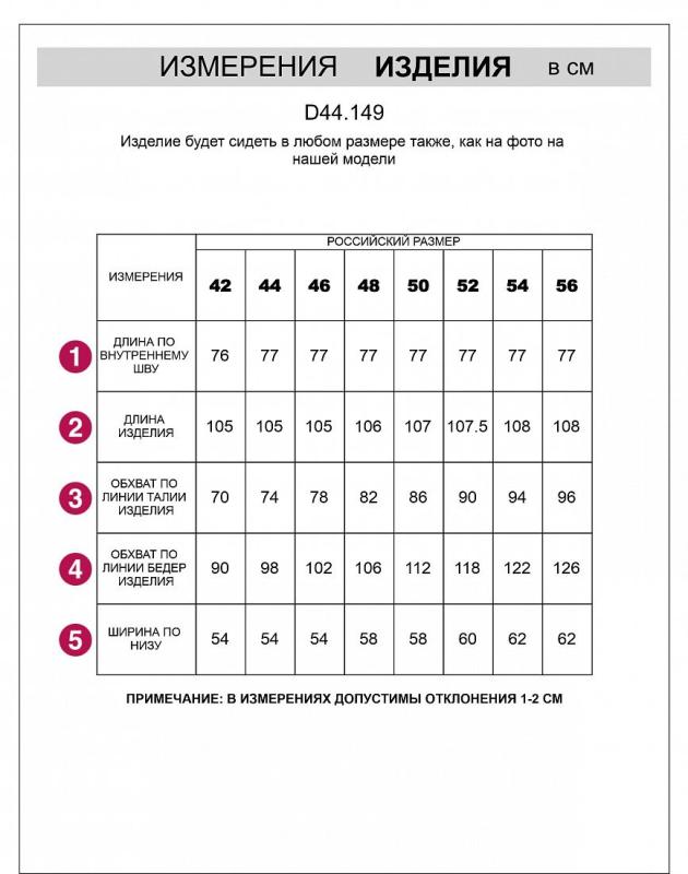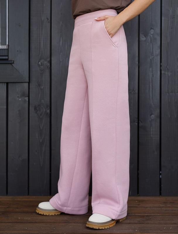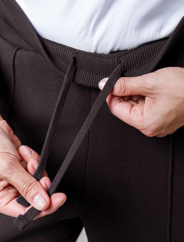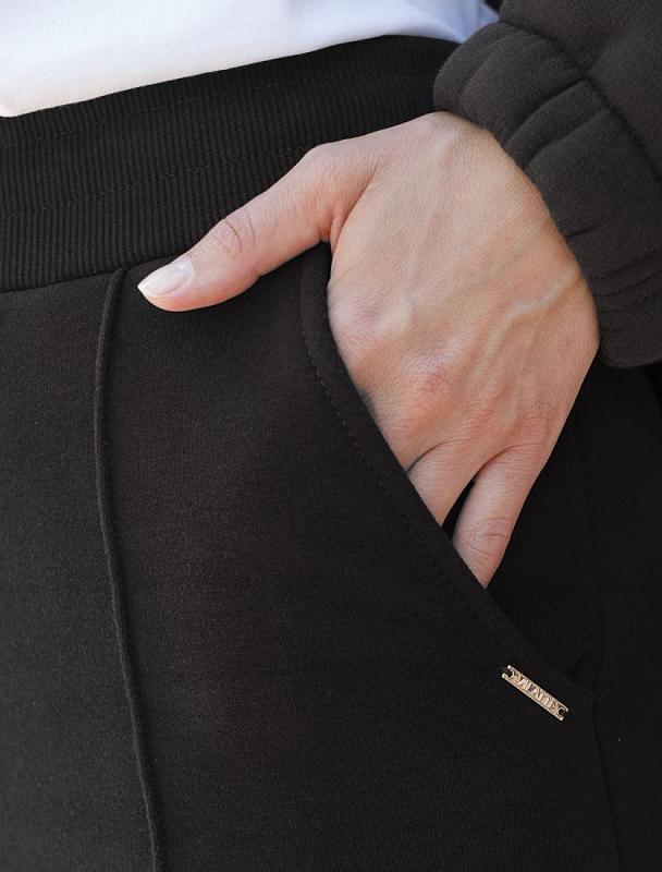Сочетается с артикулами: D49.061, D49.102, D49.103 Теплые брюки прямого кроя с удобным поясом на резинке и карманами по бокам выполнены из премиального футера-трехнитки. Наличие эластана в составе гарантирует комфорт и долговечность изделия, материал хорошо пропускает воздух, позволяя телу дышать, а мягкий начес обеспечивает дополнительное тепло и комфорт в прохладную погоду. Эти уютные брюки практичного черного цвета созданы для вашего комфорта. Свободный прямой крой обеспечивает свободу движений и максимальное удобство в любых ситуациях, поэтому они подойдут и на большие размеры, а так же на высокий или низкий рост. Фигура подчеркивается, а силуэт визуально вытягивается за счет кроя палаццо и застроченных декоративных стрелок. В повседневных трикотажных брюках вы будете чувствовать себя комфортно и уверенно, наслаждаясь каждым моментом дня.